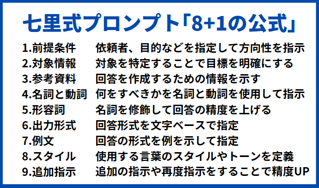 - 七里式プロンプト「8+1の公式」の使い方